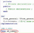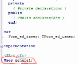 Пропишем Uses general; после раздела implementation в программном модуле unit ed_izmer как показано на рисунке.