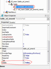 Далее выбираем поле id и в инспекторе объектов устанавливаем у него свойство Visible->False,
