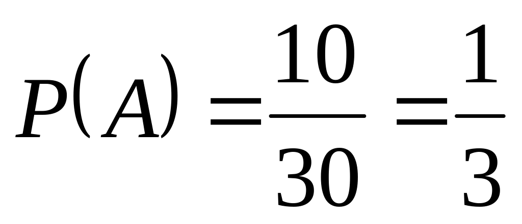 Пример 1. В ящике 30 шаров: 10 красных, 5 синих и 15 белых шаров. Вынули один шар. Найти вероятность появления цветного шара.