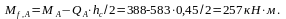 Средняя опора. Наибольший момент MBC = 599 кНм соответствует схеме I+III и действует справа от опоры В. Тогда момент по грани колонны (опоры В) справа