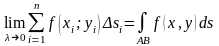 который не зависит от разбиения дуги и выбора точек , то он называется интегралом по дуге функции или криволинейным интегралом I рода. Обозначение такое: