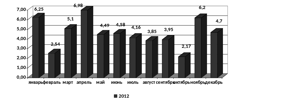Гистограмма 1 – Среднемесячные значения скорости ветра, м/с