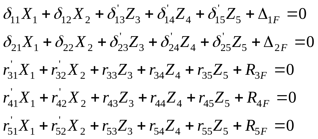 де – реактивне зусилля в i–му додатковому зв'язку, викликане одиничним вимушеним переміщенням j–го зв'язку; i=1, 2, 3…n; j=1, 2, 3…n. Zi – реактивне зусилля і–го зв'язку;