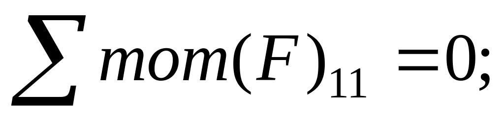Ординаты эпюры продольных сил в сечениях 1-11 (рис.16, а) определяем из условия равновесия узлов рамы (рис.13). На всех участках, где нагрузка отсутствует, или перпендикулярна оси стержня, продольная сила постоянна и определяется только в одном из сечений.