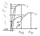 Для сталей имеющих физический предел текучести у - (для мягких сталей) принимается в расчётах за нормативное сопротивление, эти стали также имеют характеристику предела прочности us и предельное удлинение при разрыве. Высокие пластические свойства стали создают благоприятные условия для работы ЖБК.
