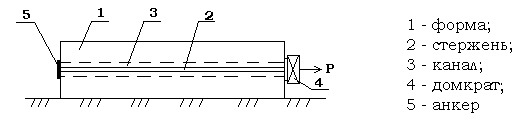 1 – натяжение на упоры; применяется, в основном, в конструкциях малых и средних пролётов;