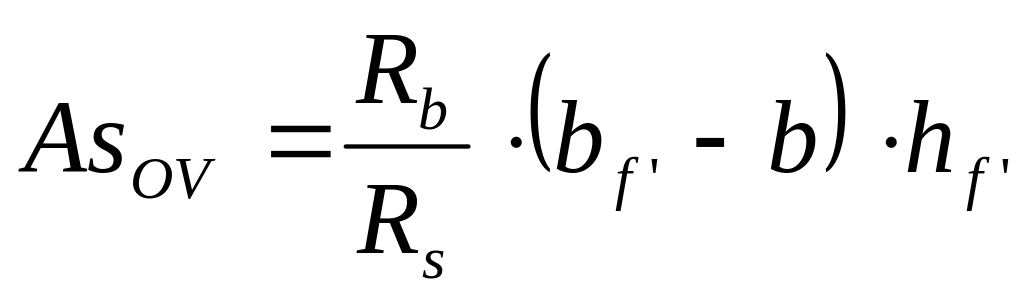 Если условие не выполняется, то на один модуль увеличиваем высоту или ширину сечения на одну ступень, увеличиваем класс бетона или устанавливаем арматуру в сжатой зоне. 7) As=As1+AsOV