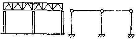 В многопролетных цехах горизонтальные нагрузки на одну раму воспринимаются несколькими (а не двумя, как в однопролетных) колоннами, и поэтому даже в цехах большой высоты часто оказывается возможным использовать шарнирное сопряжение.