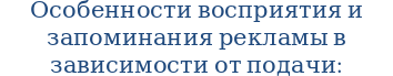 Отметим, что наиболее массовой разновидностью рекламного продукта выступают рекламные сообщения, отличающиеся огромным разнообразием и, в наиболее сильной степени, подверженные влиянию психологических факторов восприятия (мода, престиж и т.п.) тех или иных аудиторий и референтных групп.