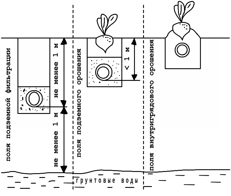 Поля подземной фильтрации Поля подземного орошения Малые поля наземной фильтрации |