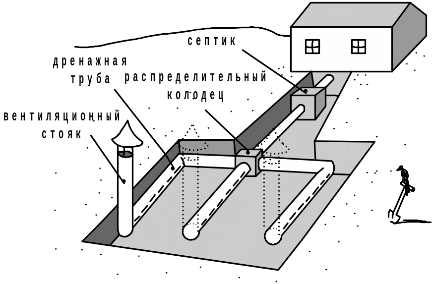 Фильтрующий колодец Фильтрующая траншея Поля подземной фильтрации |