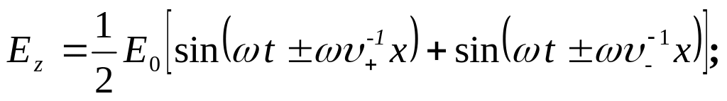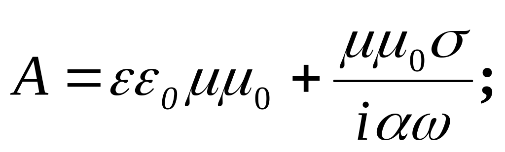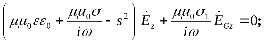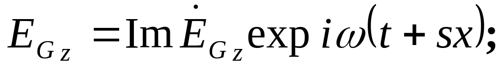 Как и в предыдущем пункте, поля можно представить комплексными соотношениями. Подставляя эти выражения полей в (47)-(50) при указанных выше условиях, можно получить следующие уравнения: