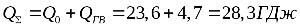 Определяем суммарный среднемесячный расход теплоты, Гдж
