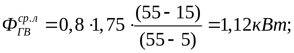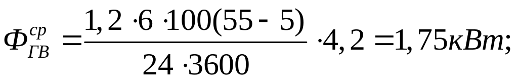 Находим среднюю тепловую мощность системы горячего водоснабжения в отопительный период, кВт
