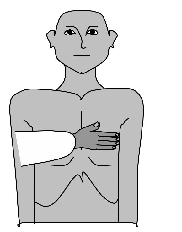 «Кошачье мурлыканье» (fremissement cataire) напоминает ощущение от поглаживания мурлыкающей кошки. «Кошачье мурлыканье» определяется в области верхушки сердца, во 2 межреберье справа от грудины, во 2 межреберье слева от грудины, в 4 межреберье у правого края грудины. Для его определения необходимо приложить ладонь правой руки плашмя в уже указанные области (рис.22). При наличии «кошачьего мурлыканья» необходимо не только выявить его локализацию, но и фазу, в которую оно определяется, то есть в систолу или в диастолу. Систолическое «кошачье мурлыканье» во 2 межреберье справа от грудины характерно для стеноза устья аорты, во 2 межреберье слева от грудины для - стеноза легочной артерии. Диастолическое «кошачье мурлыканье» на верхушке сердца характерно для митрального стеноза, в 4 межреберье у правого края грудины - для стеноза трехстворчатого отверстия. «Кошачье мурлыканье», таким образом, является важным симптомом для диагностики стенозов основных крупных отверстий сердца. «Кошачье мурлыканье» во 2,3 межреберье слева от грудины, определяемое в систолу и в диастолу, следует связывать с незаращением боталлова протока.