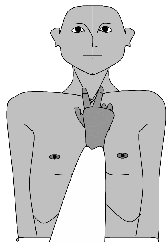 Симптом диафрагмального нерва (Мюсси)- производится равномерное надавливание 2 и 3 пальцами в области ямок, между ножками грудинно-ключично-сосцевидной мышцы (рис.55). Болезненность справа в месте надавливания встречается при холецистите, а слева - при панкреатите.