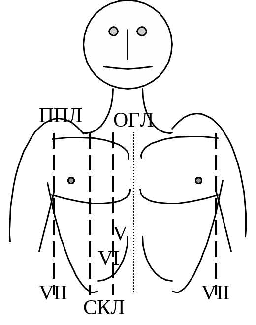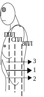 ппл – передняя подмышечная линия; спл – средняя подмышечная линия; зпл – задняя подмышечная линия.