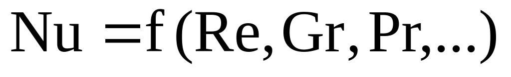 характеризует соотношение суммарного переноса теплоты конвек. и теплопроводн. В свою очередь Pr – характеризует подобие физических свойств теплоносителя. Необходимое условие подобия процессов переноса теплоты: соблюдение гидродинамических и геометрических чисел подобия. Возникают конвективные потоки, скорость которых не может быть определена. И в качестве гидродинамической характеристики, учитывающий изменение плотности среды с изменением температуры принимают Критериальное уравнение теплоотдачи в неявном виде будет иметь вид: при решении задач, искомой величиной обычно является коэффициент теплоотдачи, который входит в критерий Nu, он определяемый, а другие определяющие, поэтому критериальное уравнение теплоотдачи при конвективном, стационарном теплообмене записывают в следующем виде: . Вид функции записывают опытным путём.