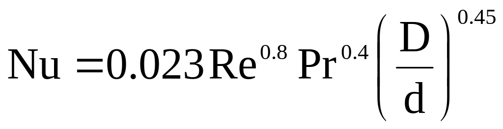 - для одиночной трубы (теплообменник типа труба в трубе),  D-внутренний