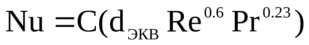 - для пучка труб при продольном обтекании(применит.к кожухообмен)  С=1,16 или 1,72 соответственно при отсутствии