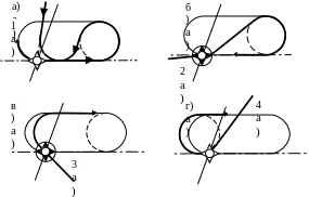 а – 1(параллельный вход) ; б – 2(смешанный); в – 3(прямой); г – 4(прямой) сторона ожидания