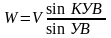 3. Находят угол сноса и путевую скорость с использованием теоремы синусов (3.8). Из нее следует:
