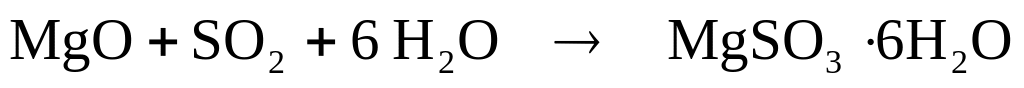 Образовавшиеся кристаллы сульфита магния отделяют от воды центрифугированием и обжигают во вращающихся печах до SO2 и MgO.