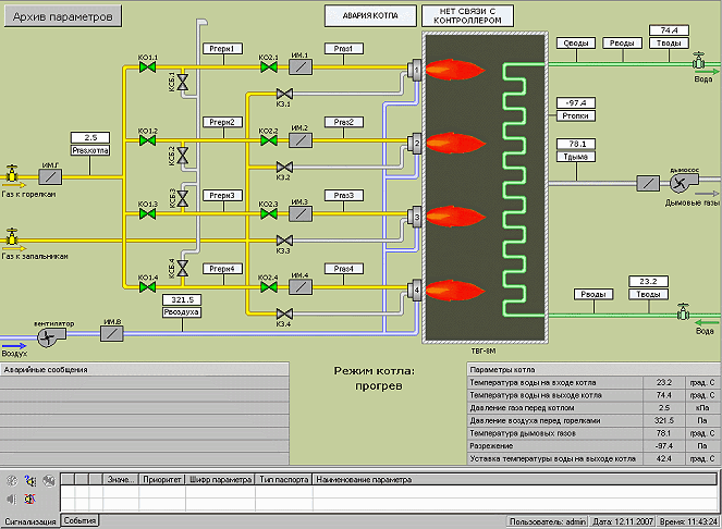 Пример мнемосхемы котла: