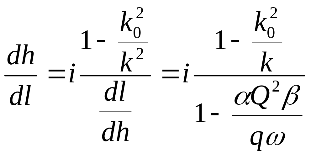 k0 – расходная характеристика при нормальной глубине h, тогда в формулу уклона на трение можно подставить k02i, имеем