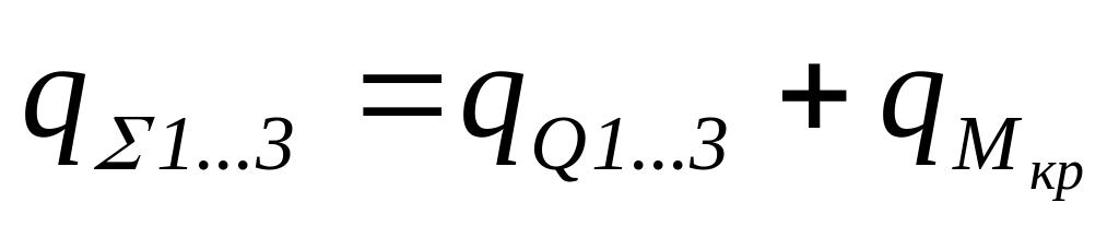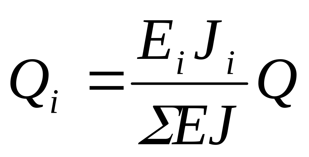 Перерезывающую силу Qi распределяем