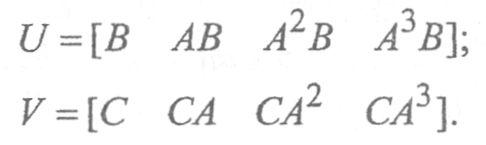 Чтобы система была полностью управляема, ранг матрицы U должен быть равен порядку системы (п). Аналогично, чтобы система была полностью наблюдаема, ранг матрицы V должен быть равен порядку системы.