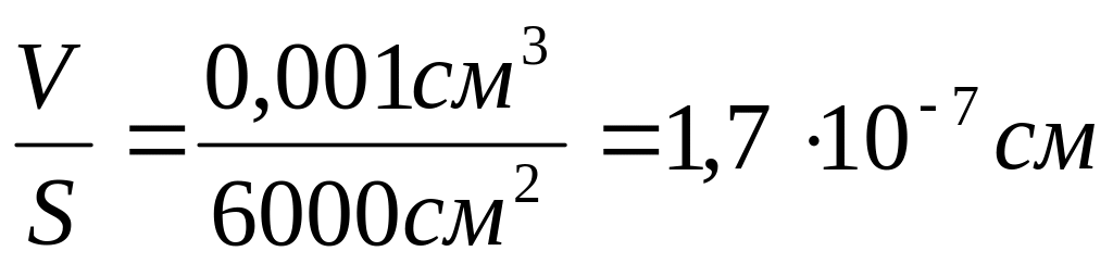 Для оценки размеров молекул наблюдают расплывание капли оливкового масла на поверхности воды. Толщина капли будет равна диаметру одной молекулы.