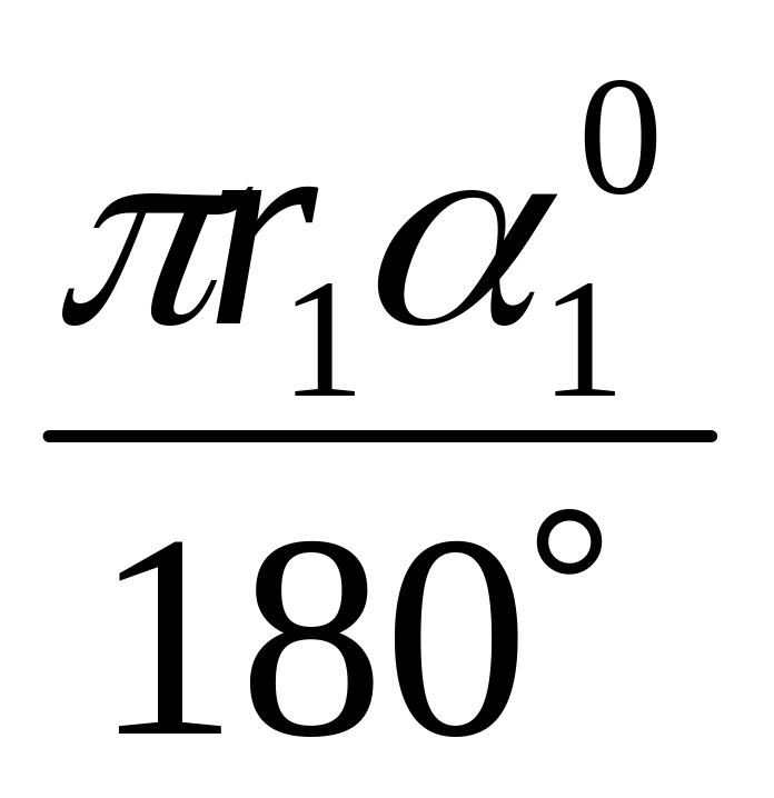 Размеры прямых участков определяются непосредственно по чертежу, длины криволинейных участков— как длина дуги сектора по формуле