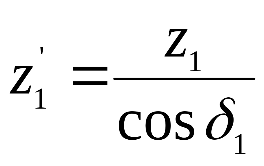 Для расчета геометрических параметров конических зубчатых колес используют те же формулы, что и для цилиндрических, вводится понятие эквивалентных цилиндрических колес. Для них числа зубьев