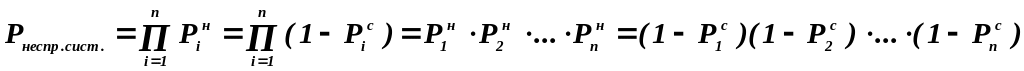 Очевидно, при паралельному з’єднанні n елементів, ймовірності справного (несправного) стану яких незалежні, ймовірність відмови системи (несправного стану всіх її елементів) :