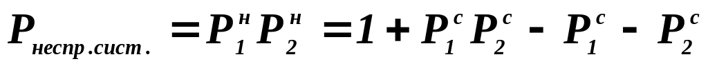 Оскільки Р1с<1, Р2с<1, то Р1сР2с<Р1с, Р1сР2с<Р2с і на підставі останньої рівності робимо висновок, що ймовірність справного стану системи паралельно з’єднаних елементів не може бути меншою від ймовірності справного стану будь-якого з таких елементів. Отже, якщо передбачена “паралельна робота” технічних засобів або різних службових осіб, то вона має за мету підвищення надійності системи, що забезпечується тільки за умови виконання своїх функцій у повному обсязі кожним з елементів системи.