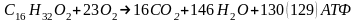 При окисленні вищих жирних кислот, наприклад пальмітинової, утвориться ще більше енергії:
