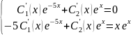 Характеристическое уравнение соответствующего однородного уравнения: k2 + 4 k - 5 = 0. Его корни k1= -5, k2=1. Фундаментальная система решений y1 = e -5x, y2 = e x, y = C1 e -5x + C2 ex. Ищем решение исходного уравнения в виде y(x) = C1(x) e -5x + C2(x)ex. В соответствии с методом вариации система для нахождения