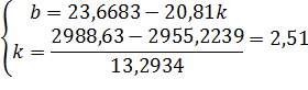 Потім із досліджуваних явищ складаємо таблицю (табл.5.3.3), яка необхідна для розв’язання рівняння регресії і розв’язуємо рівняння.