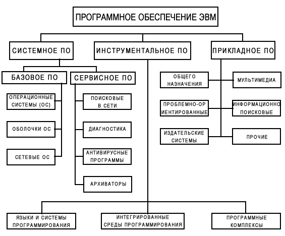 Программное обеспечение условно можно разделить на 3 класса: системное ПО, прикладное ПО и инструментальное ПО.