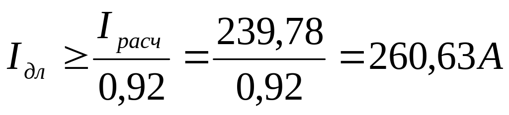 Принимаем алюминиевый кабель с тремя жилами АВВГ2(4×95) с длительно допустимым током Iдл =260,63 А,
