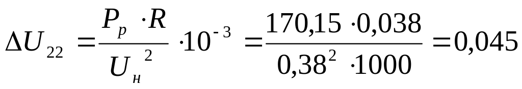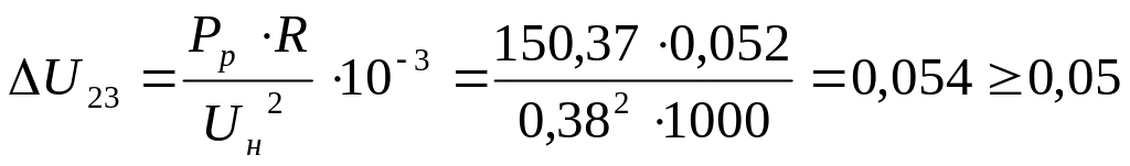∆U = Pн·R/(Uн ·Uн ·1000) = 75 ·0,036 /(0,38 · 0,38 ·1000) = 0,019<0,05 –подходит по условию