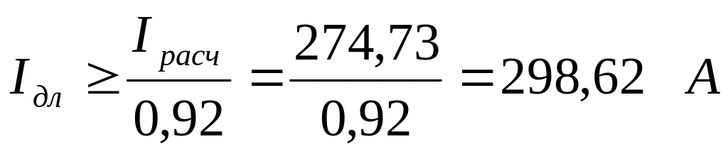 Принимаем алюминиевый кабель с тремя жилами АВВГ2(4×95) с длительно допустимым током Iдл =298,62 А,
