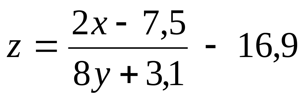 z:=(2*x–7.5)/(8*y+3.1) – 16.9;