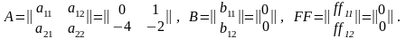 a11 = 0, a12 = 1, a21 = -A2/Ao, a22 = -A1/Ao, = -2,