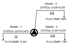 Линия 3 Pmax =45 кВт - это максимальная мощность отходящей линии.
