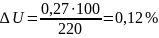 Переводим единицу измерения потерь напряжения из вольт в проценты, %: