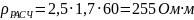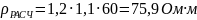 Определяем расчетное сопротивление грунта для вертикального заземлителя, Ом∙м: