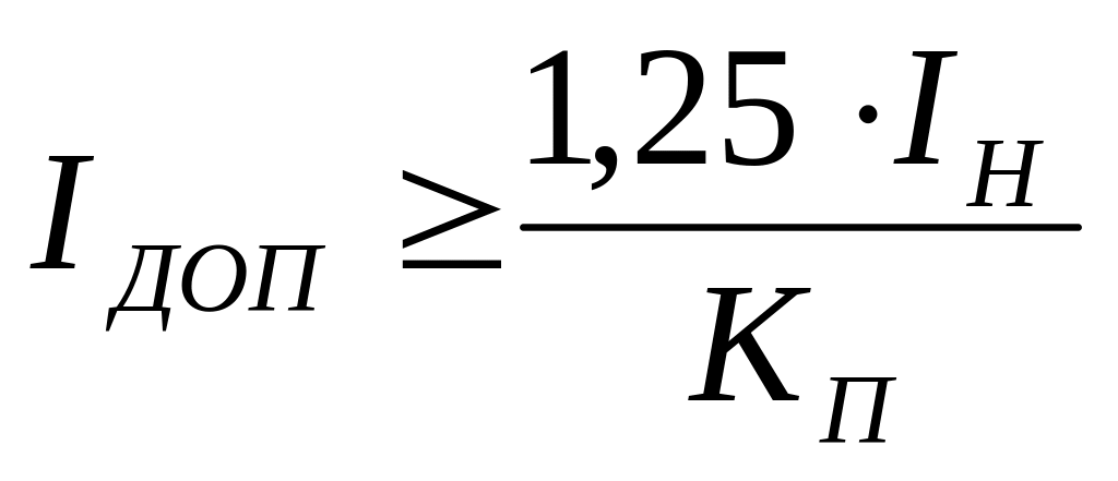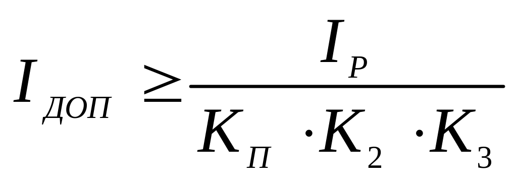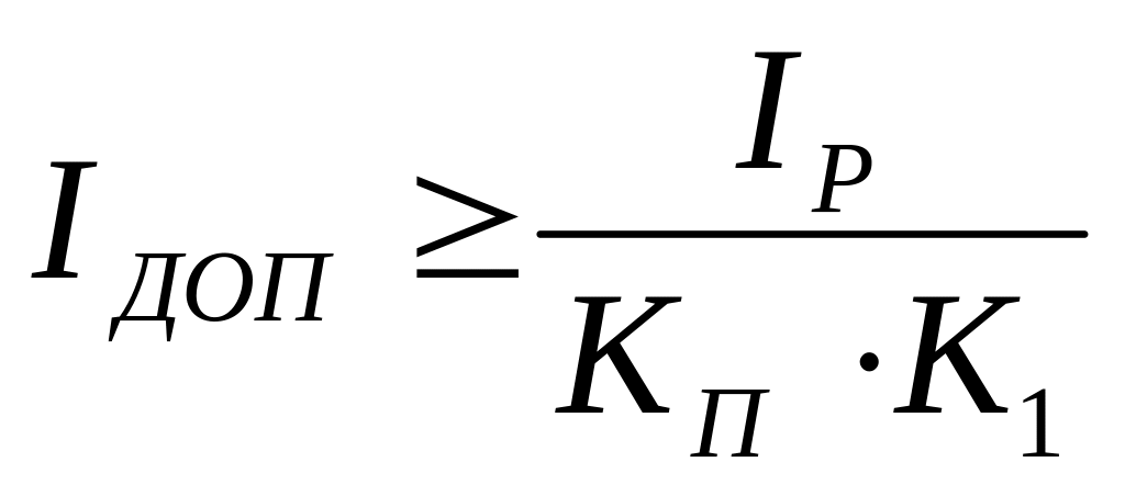 где КП – коэф. прокладки, учитывающий темп-ру окр. среды; IР – длительный расчетный ток от ЭП с ПВ=100%: