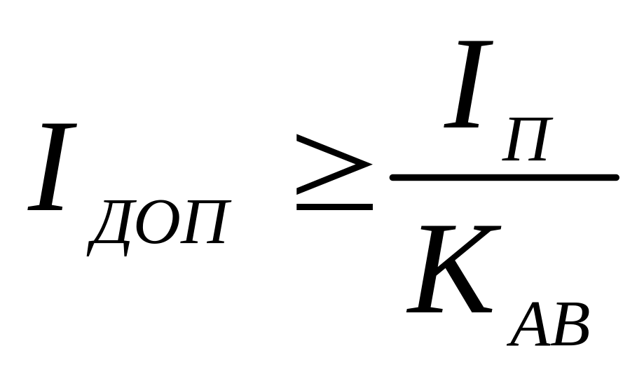 где КЗ – кратность длительно допустимого тока к току защитного аппарата; IЗ – ток защитного аппарата: номинальный ток плавкой встаки или номинальный ток расцепителя автомата или тока срабатывания расцепителя.